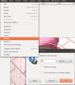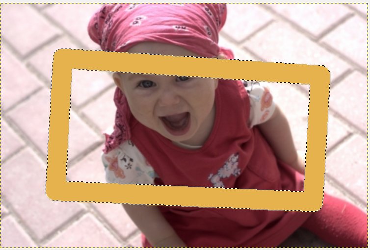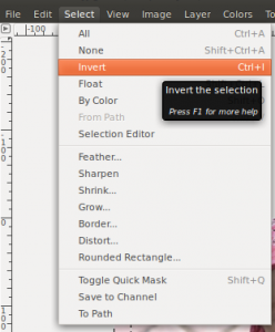 Nyt valinta kohdistuu raamiin, joten invertoidaan se; Valinta -> Käänteinen tai Ctrl-I.
