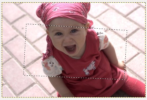 Valitse Lassotyökalulla sopiva raamien sisällä näkyvä alue. Valinta-alueen ympärillä juoksevat muurahaiset (alla olevassa kuvassa eivät juokse).