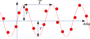 ja koska $v = \omega r = \frac{2\pi}T r$, saadaan