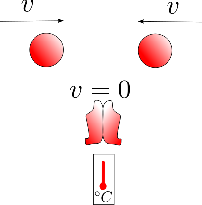 Lisätään ihmeellisyyksiä. jo G. Galilei totesi, että liike on suhteellista. Siispä hypätään toisen pallon kyytiin, kun ne heitetään toisiaan päin. Pallo, jonka kyydissä ollaan, liikkuu meihin nähden nopeudella $v=0$ ja se toinen meihin nähden kaksinkertaisella nopeudella $2v$. Mieti tätä.