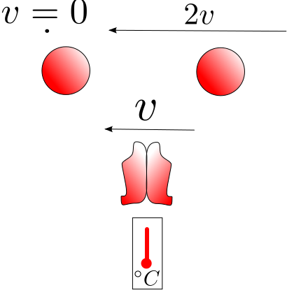 Selvästi, jos heitetään kaksi palloa, saadaan kaksinkertainen lämpömäärä eli $\Ek$. Siis $\Ek(v) \propto m$, eli $\Ek(v)$ on suoraan verrannollinen massaan, $m\Ek(v)$. Siitä ei sen enempää. Merkintä $m\Ek(v)$ tarkoittaa, että kineettinen energia riippuu suoraan massasta ja jollain tapaa nopeudesta $v$.