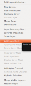 Kun homma on hyvä, sovelletaan tasomaskia (Apply Layer Mask) hiiren oikealla napilla tason nimeä klikkaamalla (kuvassa harmaalla)