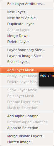 Lisää Tasot-ikkunasta uuteen tasoon tasomaski (Add Layer Mask) hiiren oikealla napilla tason nimeä painamalla.