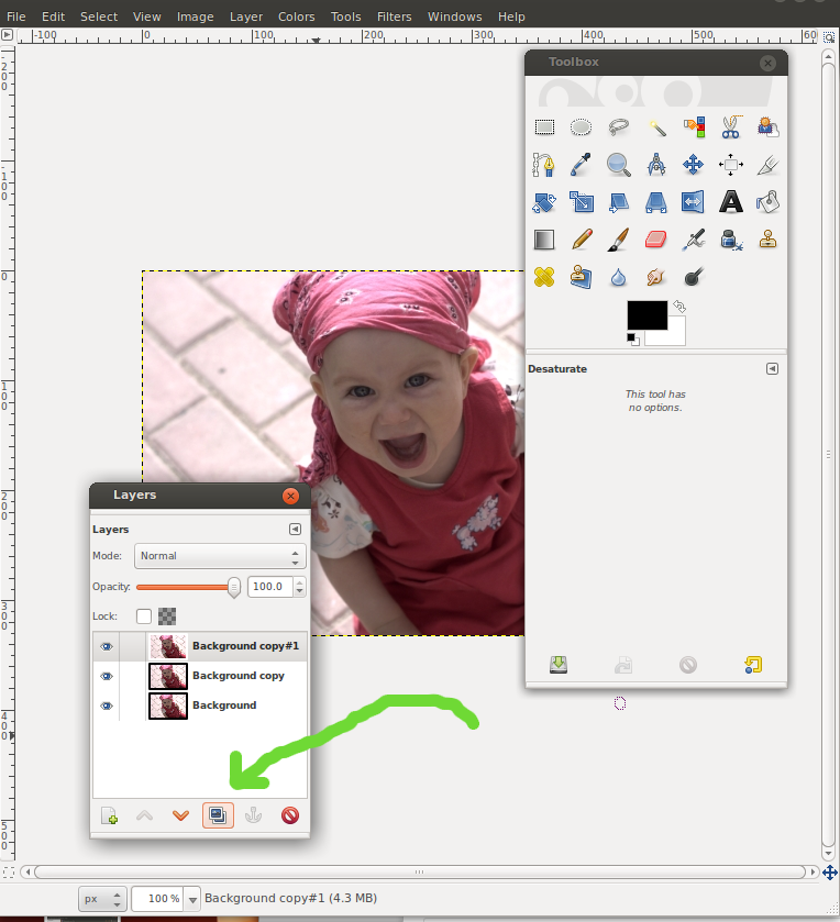Kopioi alkuperäinen kuva uudeksi tasoksi.