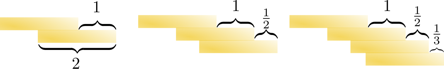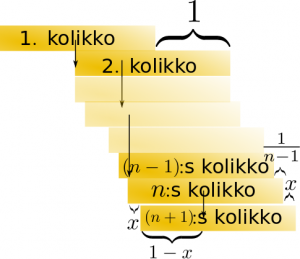 Kolikkotornin rakentaminen käy hyvin hankalaksi korkeuden $n$ kasvaessa, koska niiden erotus on vain $1/n$ alhaalla.